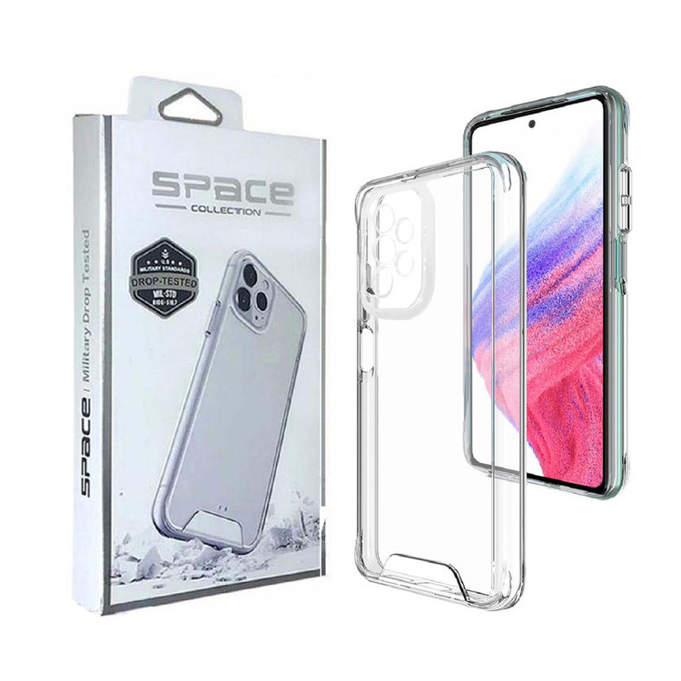 کاور شفاف اسپیس یک قاب زیبا و جالب است. علاوه بر پوشش دهی خوب گوشی و محافظت از آن در برابر ضربه، این کاور زیبایی گوشی شما را دو چندان می کند. برند اسپیس در تولید این قاب خلاقیت بی نظیری به کار برده است. اگر فلش گوشی خود را روشن کنید دور تا دور قاب روشن می شود و منظره زیبایی به وجود خواهد آمد. بی رنگ بودن و شفافیت این محصول نیز موجب جلب رضایت طیف وسیعی از کاربران می شود. پس از خرید برچسب روی قاب را جدا کنید