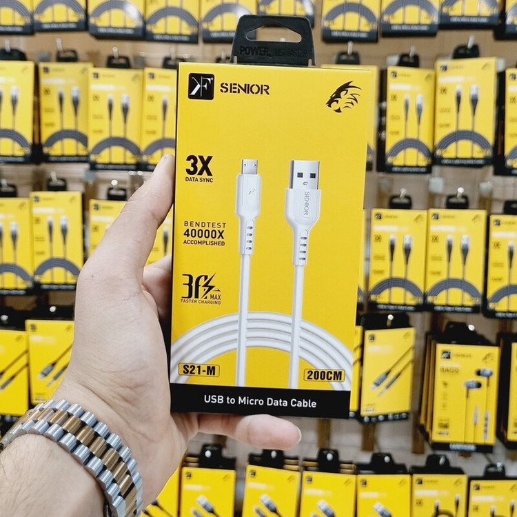 کابل شارژ و انتقال داده USB TO Micro با قابلیت سوپر فست شارژ 65W و طول 2متر و سرعت انتقال داده 3X. این کابل با جنس سیلیکونی محصول شرکت کی اف سینیور بوده که یکی از برندهای معتبر لوازم جانبی موبایل میباشد. جنس کابل بسیار مرغوب و با کیفیت می باشد.
